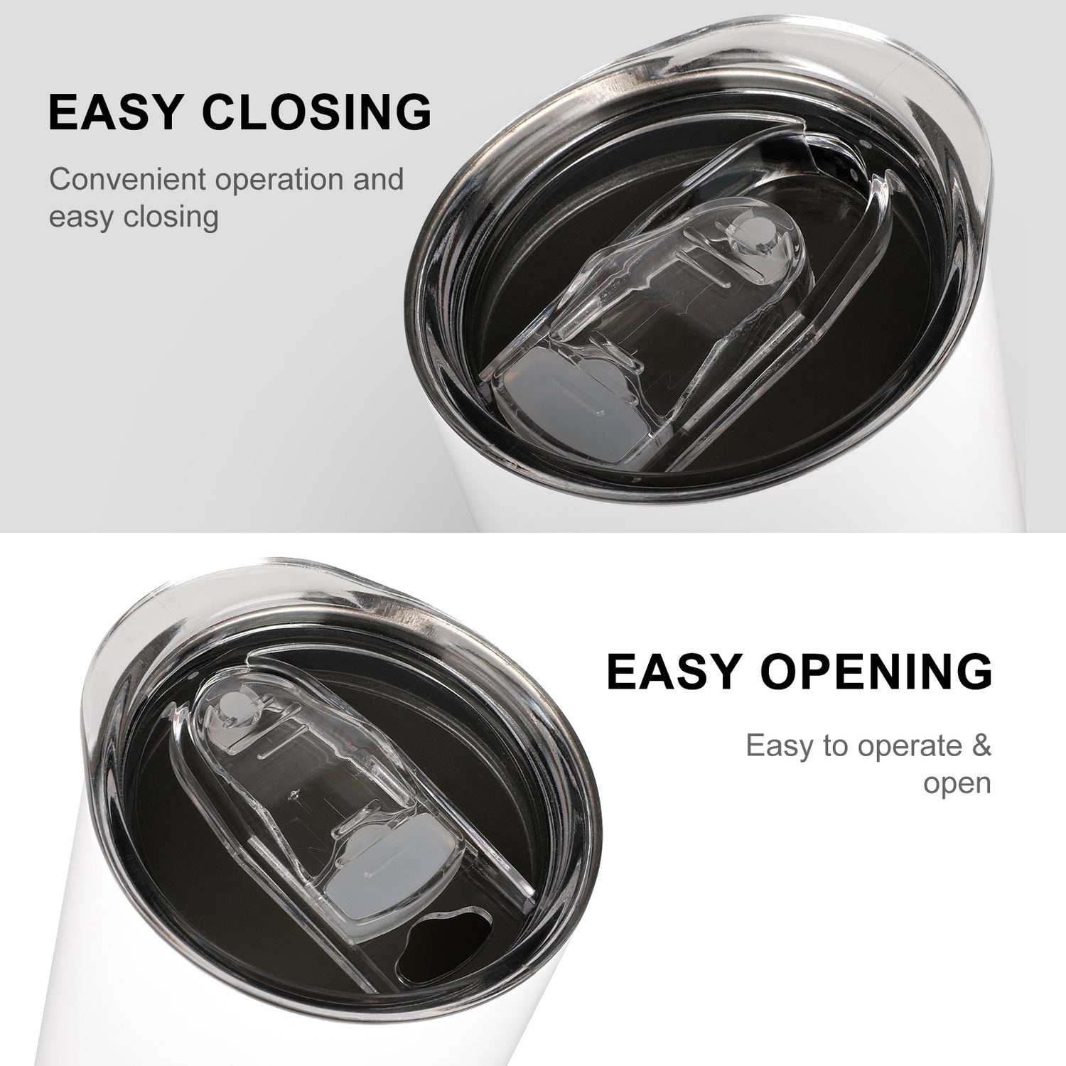 The Insulated Drinking Cups with Lids is compact and portable for daily carrying, wherever you go. Constructed with 304 stainless steel, the Insulated Drinking Cups with Lids is pretty sturdy for long-time use. The spill-proof Insulated Drinking Cups with Lids with leak-proof lid prevents the drinks from spilling. The air vent on the mouth piece allows beverages to flow out smoothly without gushing or overflowing. The Insulated Drinking Cups with Lids with smooth and nice-looking exterior will catch your eyes at the first sight and brighten your mood. Open and lock it easily, you can open the flip lid with thumb in one second to drink from the mug.