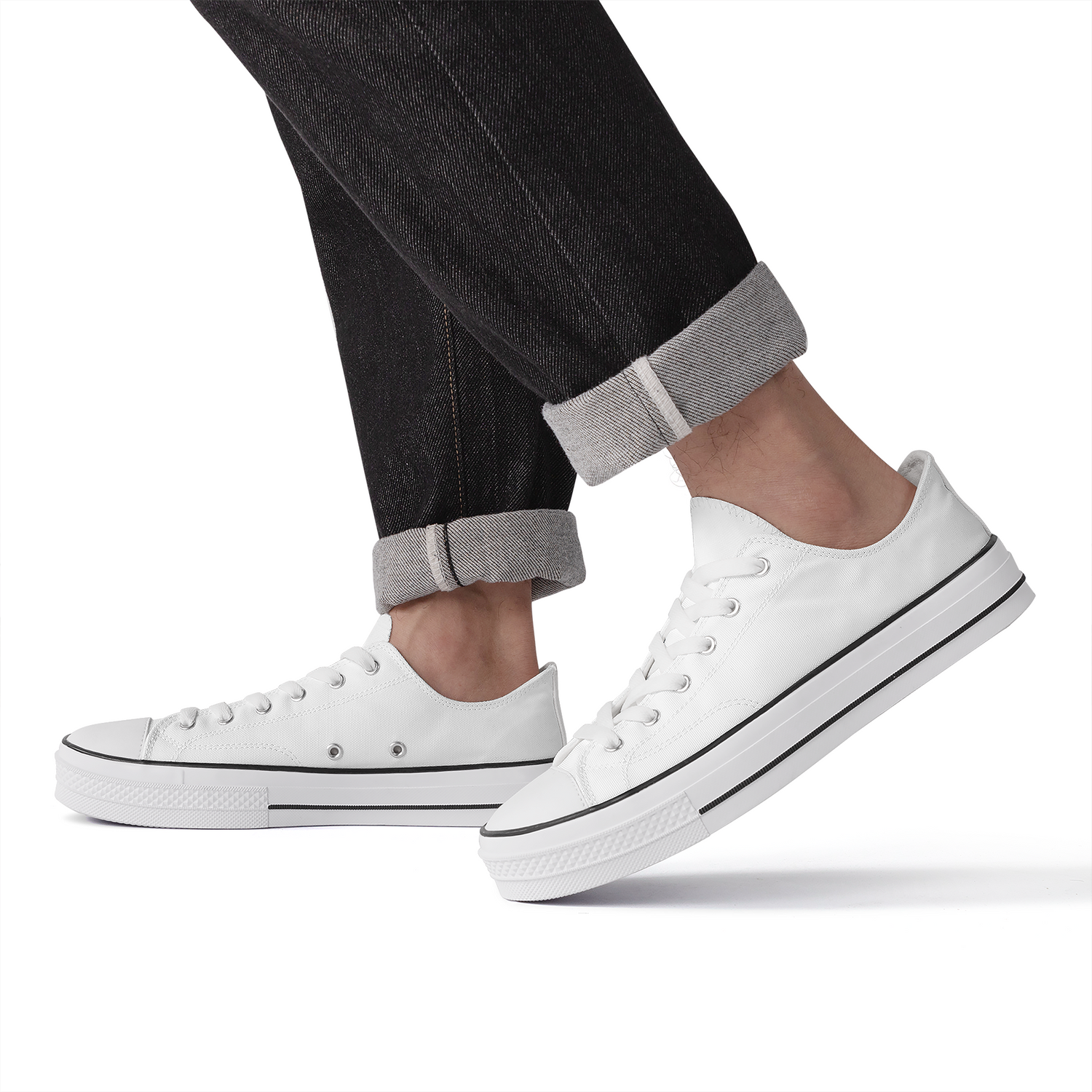 * Wear-resistant rubber soles for black & white low top canvas shoes